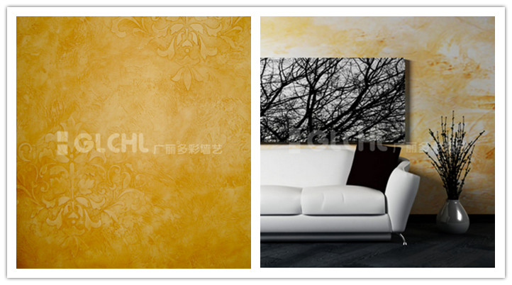 3、藝術(shù)涂料最大的賣點除了環(huán)保,就是裝飾效果了,廣麗多彩墻藝市場部王經(jīng)理介紹說:“眾所周知,墻紙有著很漂亮的花紋及質(zhì)感,但是無論多有技術(shù)的施工人員,貼出來的墻紙,都會看得出明顯的接縫,達不到完整一體的裝飾效果,而藝術(shù)涂料,除了可以做出墻紙一樣的花紋和手感,還可以實現(xiàn)顏色和花紋完全量身訂制,就是說客戶喜歡什么顏色的花,想要什么風(fēng)格的裝飾效果,都能全做出來,要讓墻面復(fù)古還是時尚,全由客戶作主,這點,目前只有墻藝藝術(shù)涂料能做到”