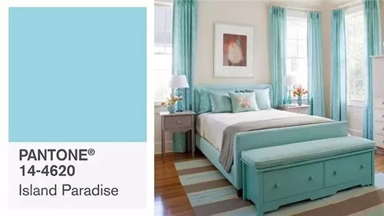 天堂島是一個(gè)令人耳目一新的水嫩色調(diào),被用來轉(zhuǎn)換情境。清涼的藍(lán)綠色韻,充份說明我們成功脫逃的偉大夢(mèng)想,天堂島是象征性的熱帶場(chǎng)域和我們放松身心的渴望。猜得到這顏色的靈感是源自于海洋中的島嶼,感覺相當(dāng)夢(mèng)幻,不管是穿起這個(gè)顏色去度假還是窩在點(diǎn)點(diǎn)海藍(lán)的小家中,都是相當(dāng) relax。