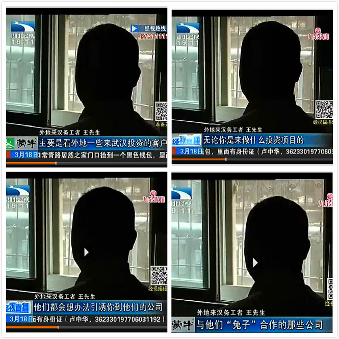 由于考察的客戶,到武漢之后人生地不熟,一般出站后會與要考察公司的人員進行聯系,在此過程中很容易被這些人找到可乘之機,同時他們偽裝車站工作人員,對考察的客戶說一些鼓動性的話語,甚至將客戶要考察項目的公司說成是騙子、政府取締的項目等等,有些考察的客戶以為是正規的工作人員,會出現判斷失誤,一旦聽信這些“加盟兔子”的花言巧語,就會真正的上當受騙。